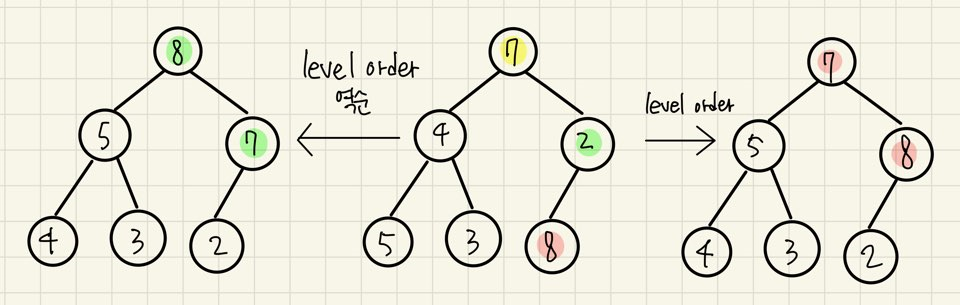 이 사진에서도 level order 순으로 heapify를 진행하게 된다면(max heap),