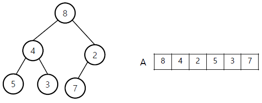 1️⃣ A를 완전 이진 트리(힙)의 순서에 맞게 트리에 대응하여 생성