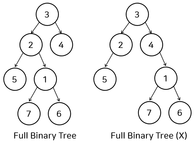 그림의 오른쪽 트리에서, '2'와 '4'는 child를 하나씩 가졌기 때문에 full binary tree가 아니다.