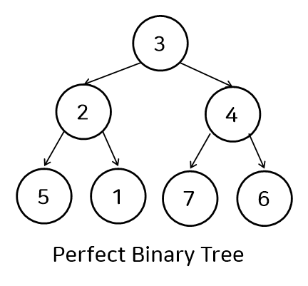 perfect binary tree는 가장 깊은 depth의 node들은 child가 없고, 다른 모든 node들은 두 개의 child를 가진다.