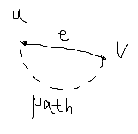 이 때, path에 있는 edge이던 e이던 아무 edge를 삭제해도 여전히 u에서 v는 reachable하기 때문에 가장 weight가 큰 e가 삭제될 수 밖에 없다.