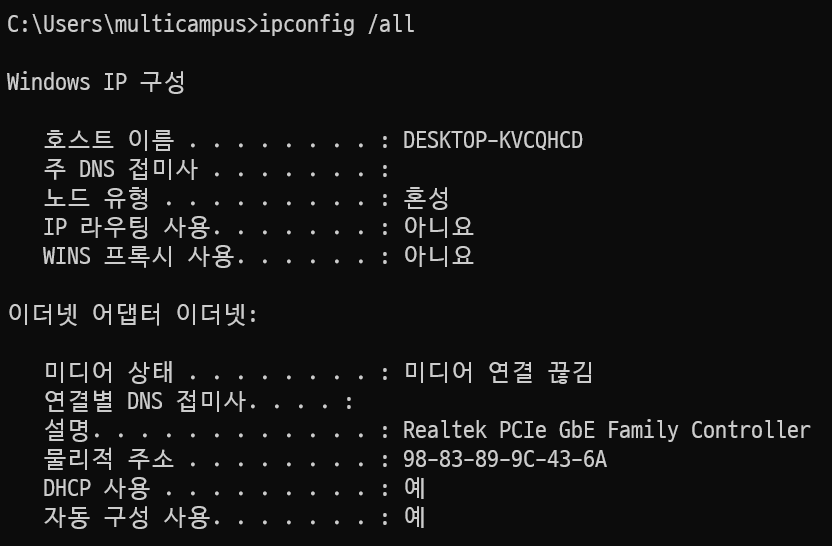 + 내 PC의 MAC 주소를 확인하는 방법