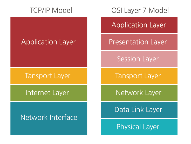 OSI 7계층 - 네트워크 통신을 체계적으로 다루는 ISO에서 표준으로 지정한 모델. 데이터를 주고받을 때 데이터 자체의 흐름을 각 구간별로 나눠 놓은 것