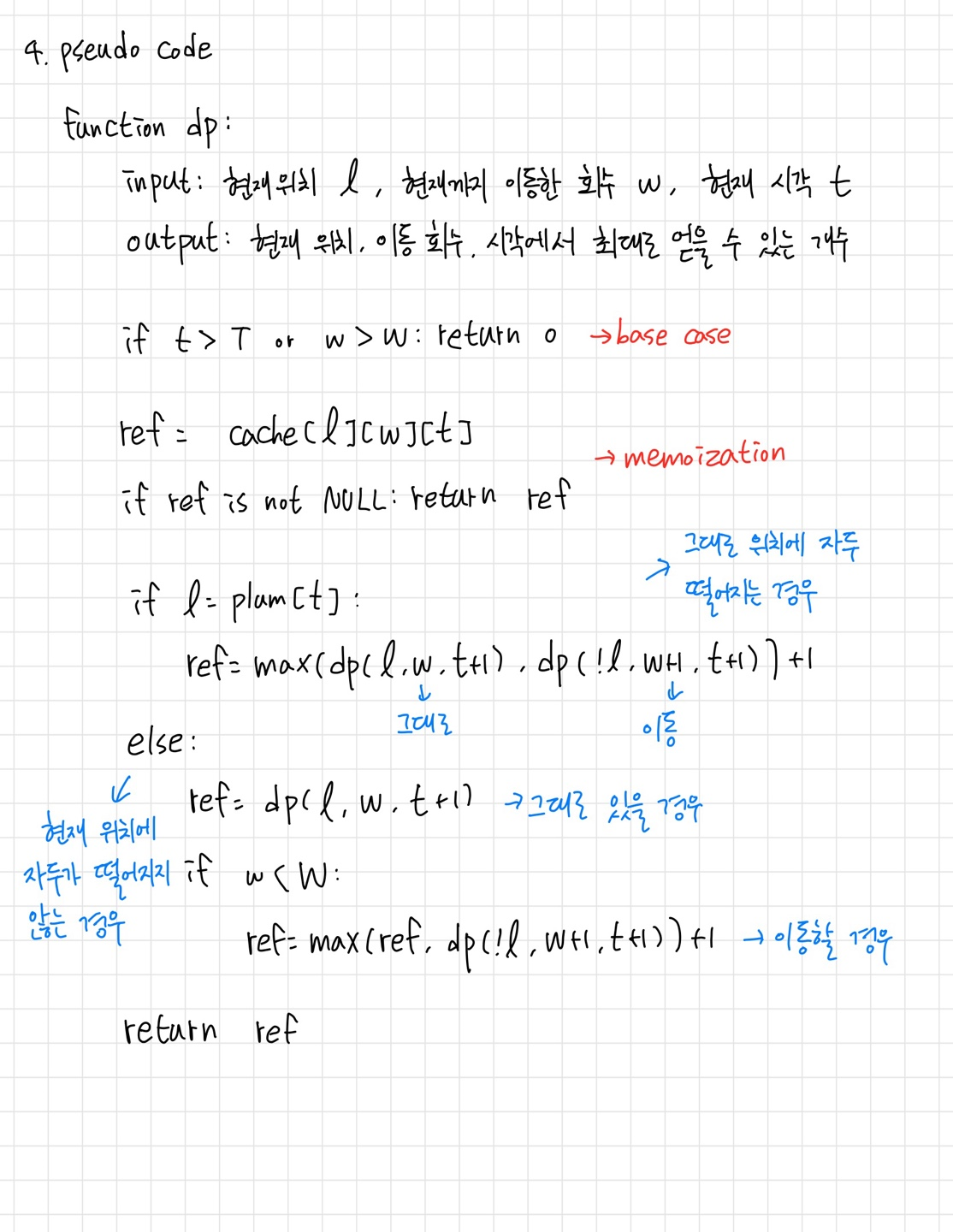 그래서 나는 항상 재귀함수를 구현한 뒤에 메모이제이션을 적용한다