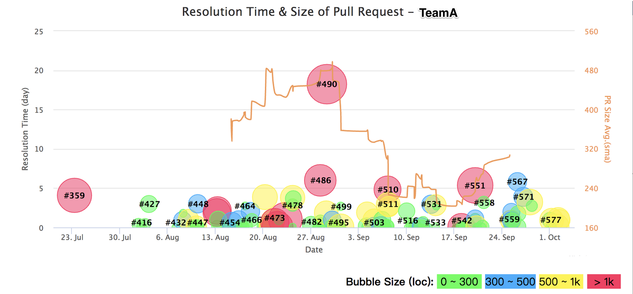 PR 크기에 따른 해결 시간 그래프 - 라인 기술블로그 그래서 많은 IT 회사들에서는 PR의 크기를 작게 유지하기 위해 노력한다 !! 사진에서도 나와있는 것 처럼, 하나의 PR에 소모되는 시간이 줄어들고, 빠른 피드백과 빠른 수정이 가능하다.