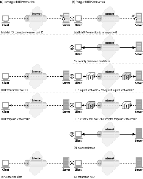 언급한 것 처럼 SSL 계층을 통해 보안 커넥션을 새로 생성하는 것 이외에는 기존 HTTP 트랜잭션과 크게 다른 것은 없다.