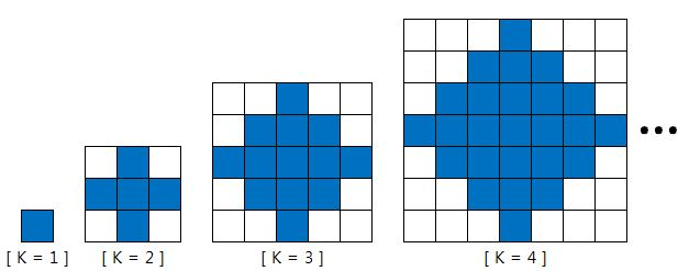 영역의 크기는 2K^2 - 2K + 1과 같다