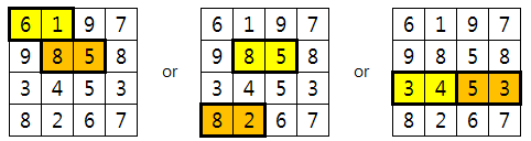 A와 B 둘다 각각 연속된 M개의 좌표를 선택한 뒤 각각 그 중에서 얻을 수 있는 최대 꿀의 양을 구해 수익을 계산하는 방법이다